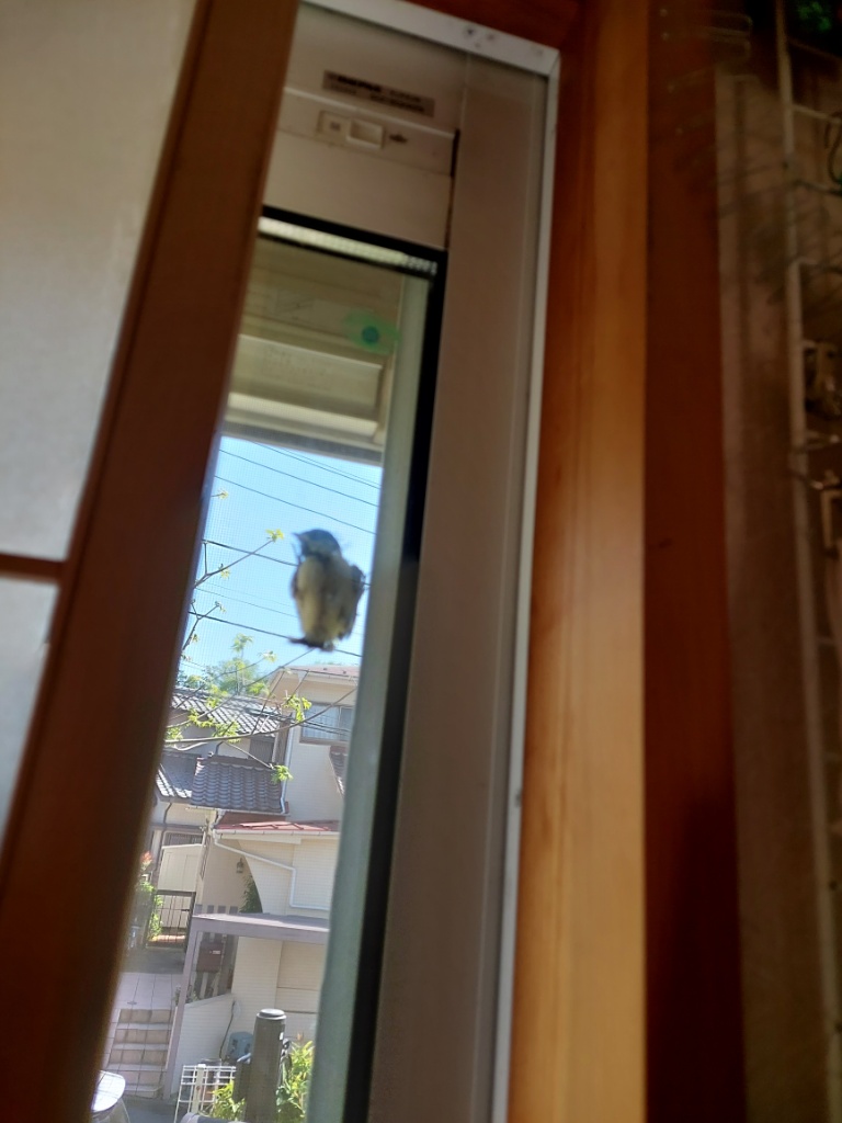 家で仕事をしていると、窓のところでなんとなくガサガサいう。障子を開けてみると・・・