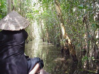Vetcom's water-base in RungTrangForest Rowed by a Vietnamese lady, make a circle in a swamp. Map of this swamp trip on the left |