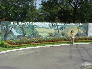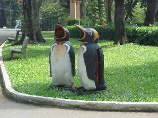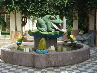 Starting from a zoo in the city. A trash can on lower left, and a fountain on lower right. Can see a different artistic taste in these. |