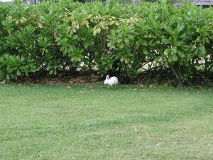 ![]() White and Black rabbits in the garden |